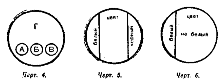 На чертеже 4 показано отношение соподчинения, в котором находятся понятия А, Б и В, общим родом для которых является понятие Г. Объёмы соподчинённых понятий не совпадают друг с другом, но все они входят в объём одного и того же родового понятия.